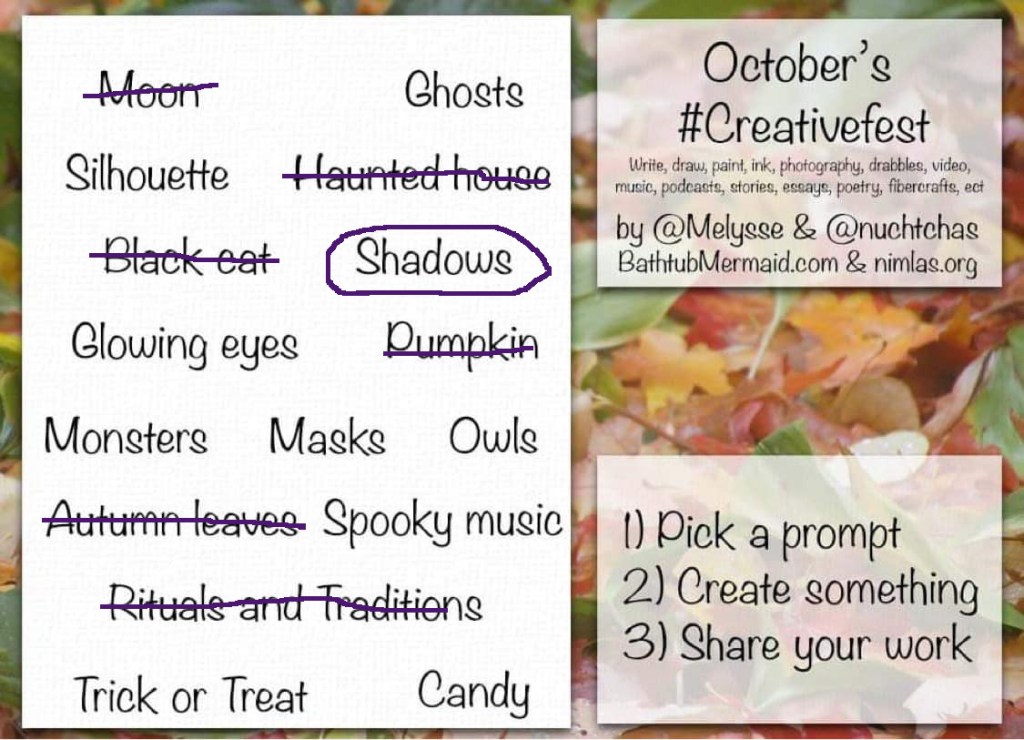 Today’s prompt was taken from October #CreativeFest, a month-long challenge. Please share, comment, and try it out yourself!
