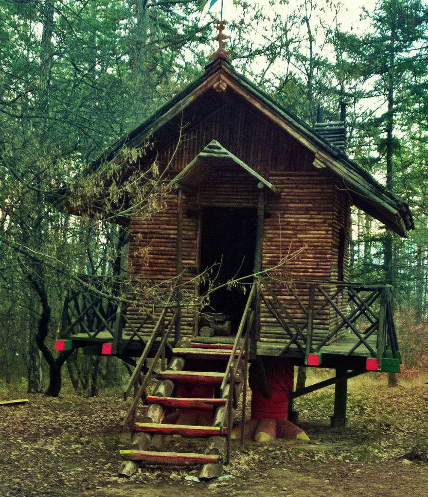The witch lived in a chicken-legged hut, and while she would fly when she needed to be somewhere, the hut could be spotted wandering the hills, particularly on dark, rainy nights.